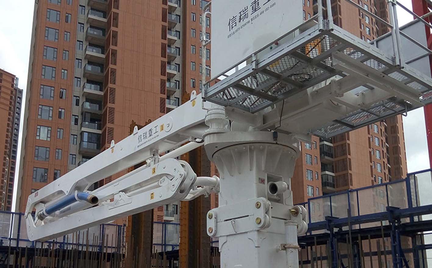 HG21AM-3R固定式液壓布料機·布料范圍廣。臂架結構采用高強度鋼板制作,強度大,自重輕?!ふ麢C采用模塊化設計,且模塊之間采用銷軸快速鏈接,拆裝方便,運輸快捷?!た蛇x擇無線遙控或有線遙控操作方式,操作輕松方便?!るS爬升模架一起爬升,減少爬升工作量,提高效率?!ひ簤弘姎庠捎脟鴥?nèi)外知名品牌,性能穩(wěn)定。·采用45Mn2耐磨輸送管,提高輸送管壽命,減少換管次數(shù),提高生產(chǎn)效率。產(chǎn)品參數(shù)?&n